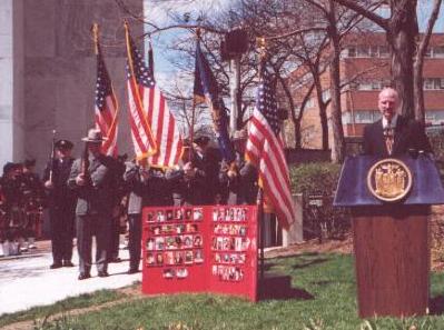 in 1995 and Shirley in 1998. They were very special people and we miss them very much.![]() Constantine's Circus, Inc. President Terry O'Neill serves as Master of Ceremonies at the New York State observance of National Crime Victims Rights Week and the annual dedication of memorial bricks at the NYS Crime Victims Memorial at Empire State Plaza. Every year, bricks bearing the names of victims of violent crime are added to the memorial walkway. The color guard was provided by New York State Police Superintendent James W. McMahon. Constantine's Circus, Inc. is an annual participant and supporter of the